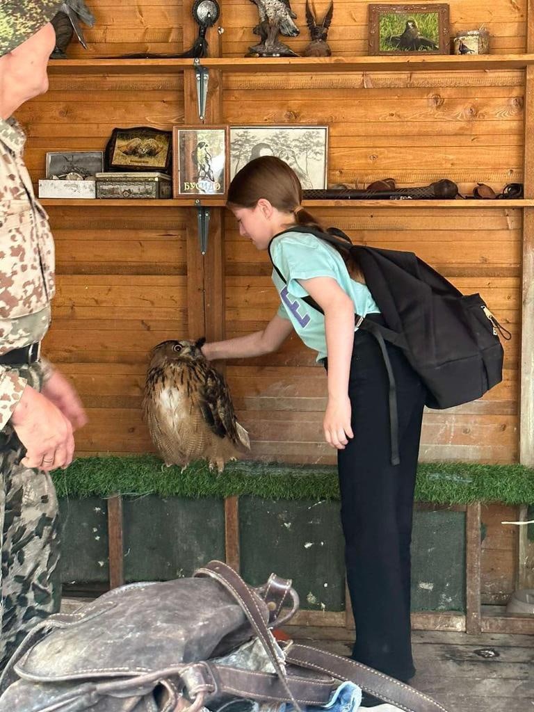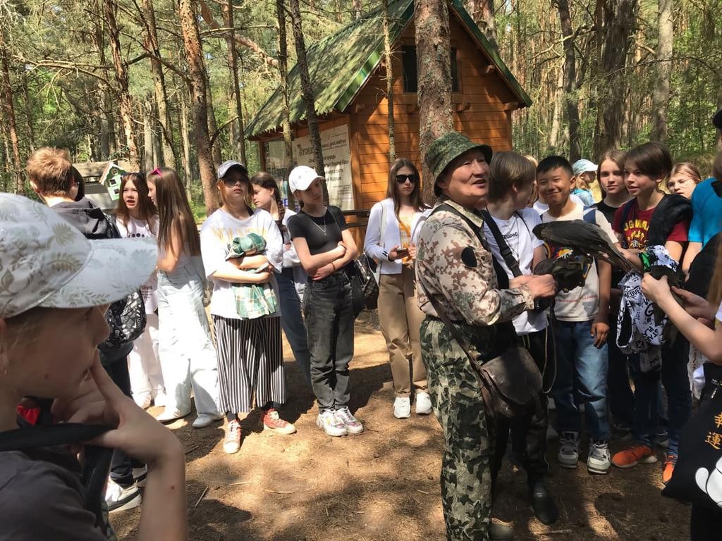 Школьникам показали, как происходит работа с этими птицами, а также рассказали об их особенностях, привычках, методах и проблемах разведения. Ученики смогли увидеть Соколиное шоу и узнали подробности взращивания птенцов филинов.