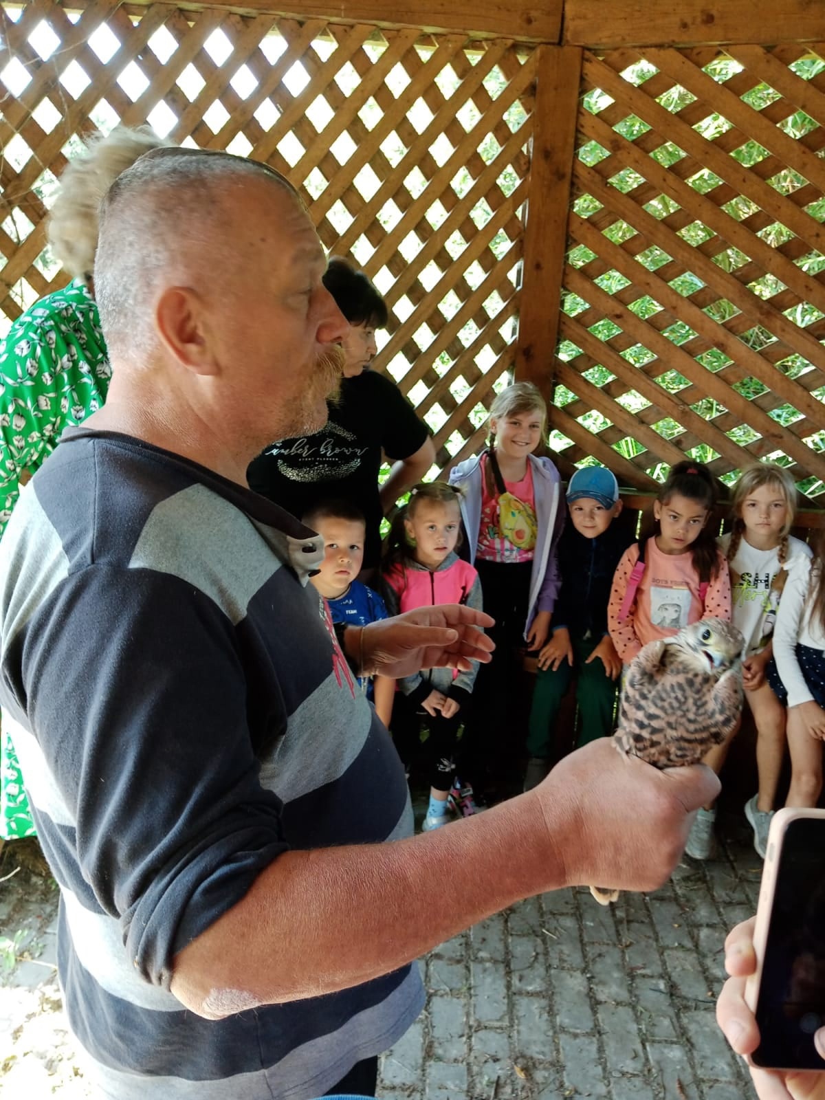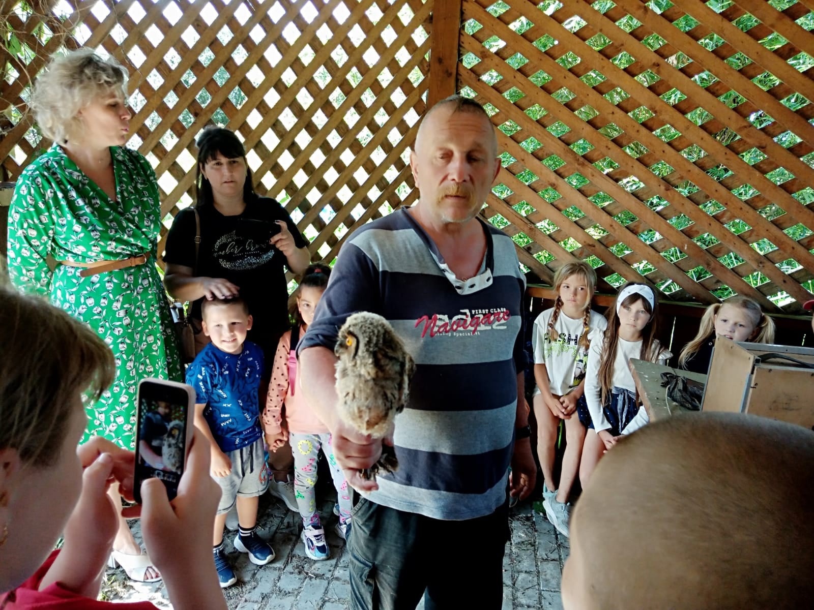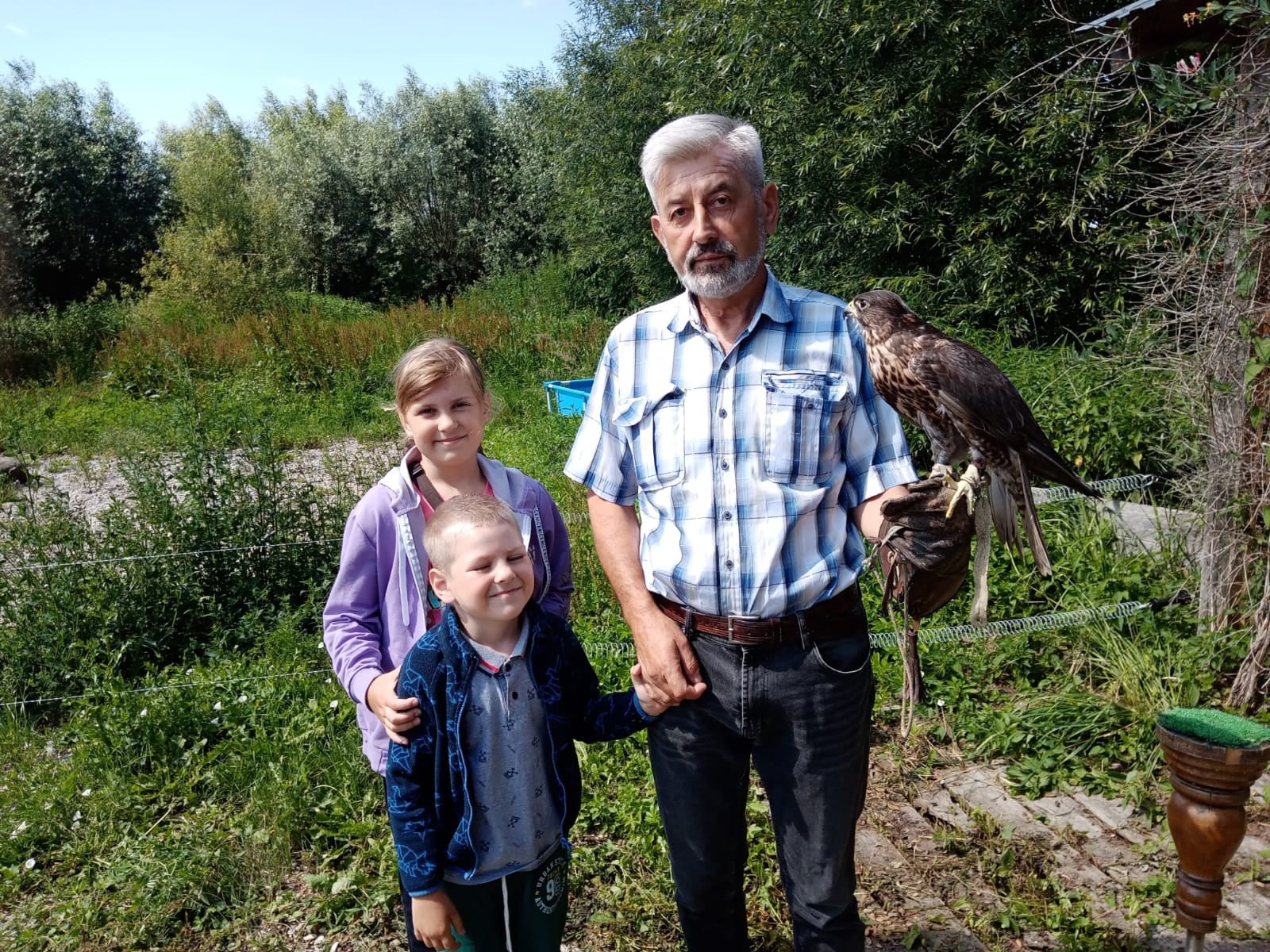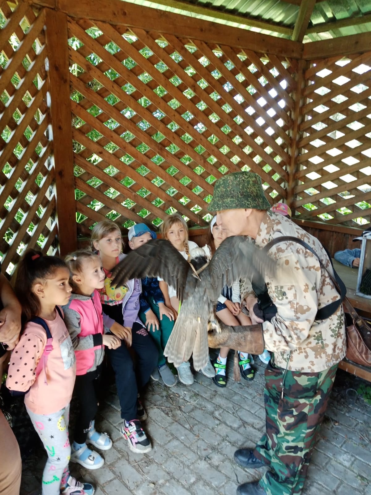 Ребята знакомились с птицами, самые смелые смогли дотронуться до них. Алексей Афанасьевич Лаврентьев, руководитель клуба, рассказывал множество историй из жизни птиц, приобщал детей к миру диких птиц, которым тоже нужна забота и помощь. Между прочим, соколиное шоу Алексея Афанасьевича признано одним из лучших в России! Наши пернатые питомцы пользуются особенным вниманием!