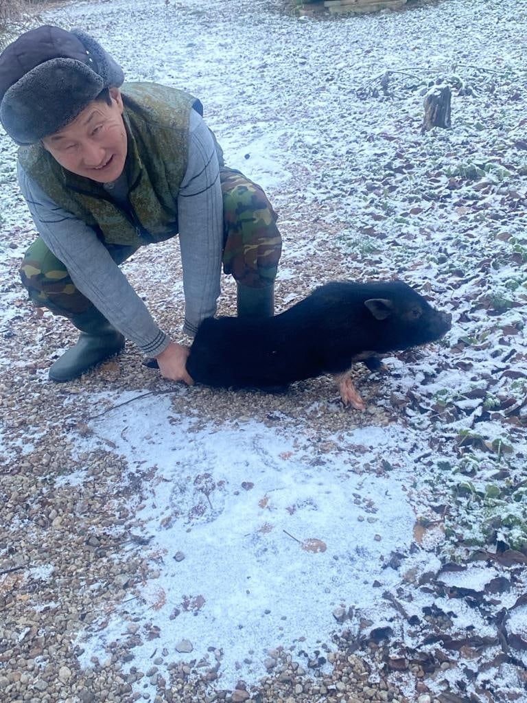 Александр решил взять поросенка к себе домой. Пару дней они провели вместе, но поросенок все еще находился в состоянии стресса и плохо кушал. Александр решил обратиться за помощью к Алексею Афанасьевичу, который имел опыт в уходе за животными. Алексей согласился взять поросенка к себе и создал для него все необходимые условия, включая отопление. Постепенно, поросенок пришел в себя, оттаял, стал более общительным и активно отъедается. Назвали его Винипух.