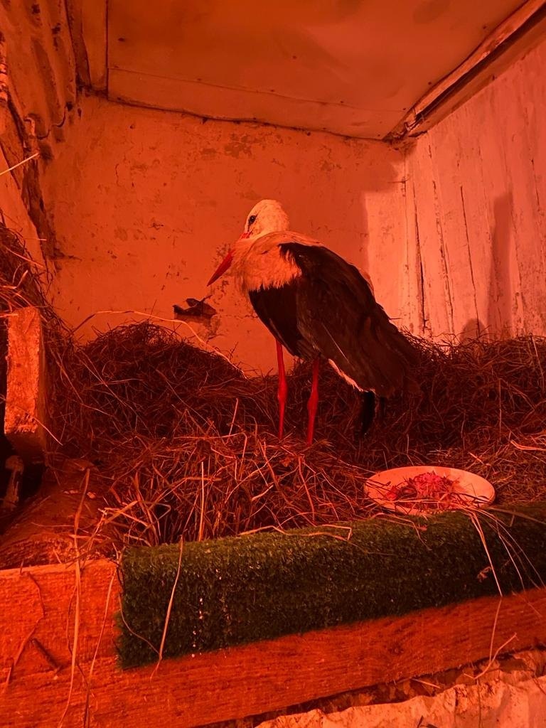 За пару недель аист заметно окреп. Его состояние уже не внушает опасений, но питание становится проблемой. «Нам было сложно найти пищу, которую он согласился бы есть,» — говорит Алексей. В итоге аист предпочел свежую мелкую рыбку, но этого недостаточно для полноценного питания, поэтому команда продолжает работать над его рационом.
