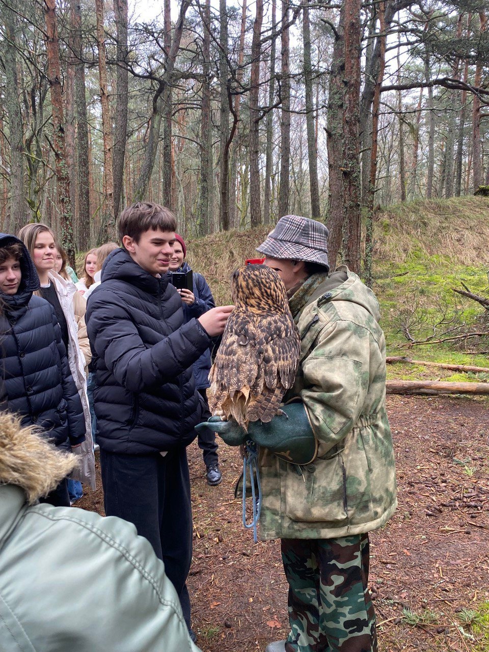 Мы начали с посещения будущего Музея орнитологии в Рыбачьем, где Светлана Афанасьевна Соловьева показала ребятам готовые экспозиции и рассказала о птицах Куршской косы. Но самое крутое было впереди — они встретились с молодой семьей филинов. Да, именно тех птиц, у которых 1 апреля появился птенец. Смотреть, как папа-филин заботится о своей семье, было просто невероятно трогательно.