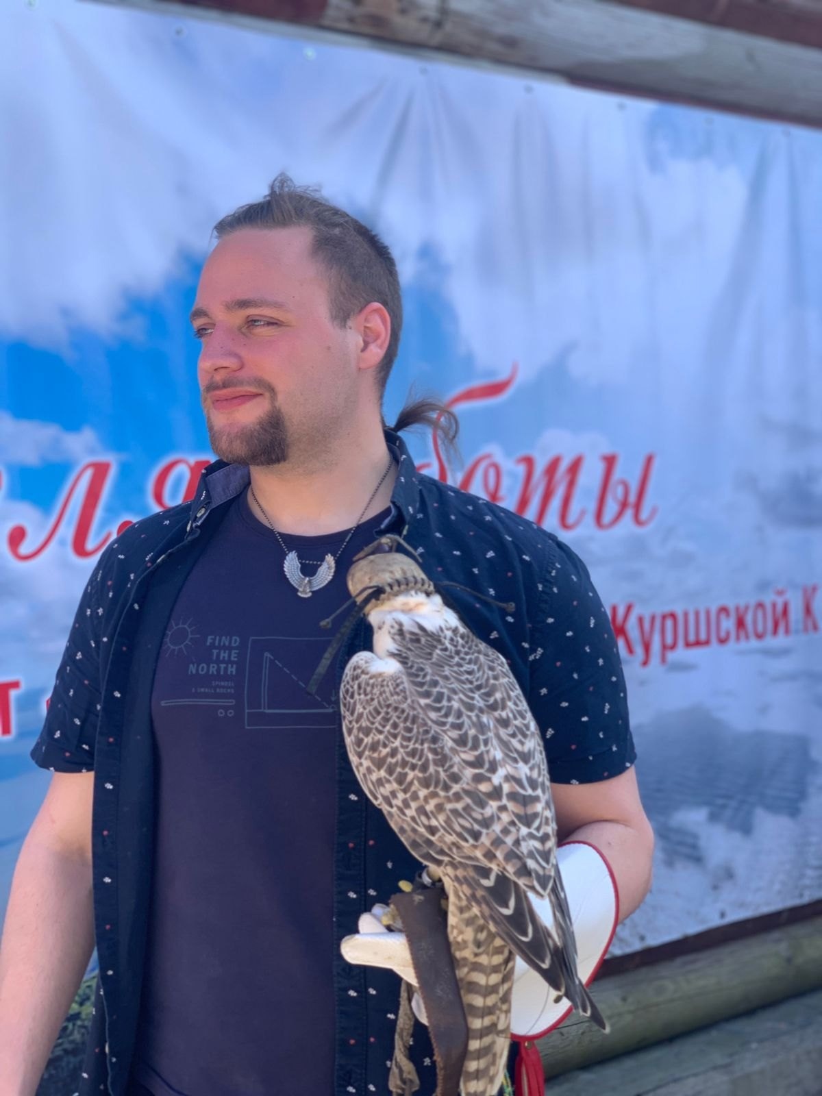 Интерес именно к соколиной охоте у меня возник в 2014 году, а в 2016-м я начал активно изучать теорию под руководством наставников в лице Михаила Мурсеева и Натальи Гречаной, и завел свою первую хищную птицу. Сейчас у меня две рабочие птицы, которые ежедневно свободно летают и полноценно охотятся .