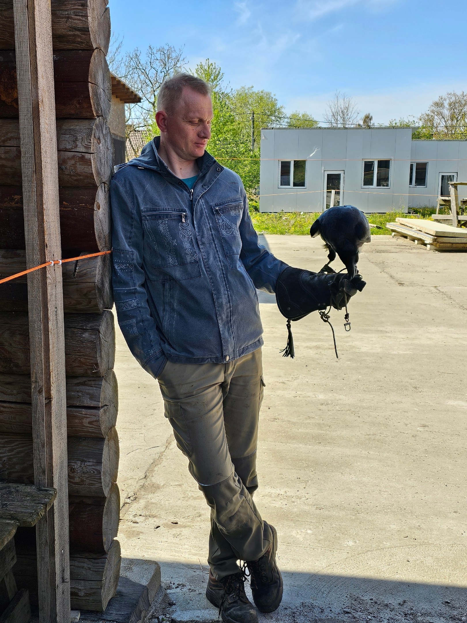 — «Ориентировочная я занимаюсь 20 лет, а начал я заниматься птицами, когда закончил школу. Не знал на кого пойти учиться. Мне знакомые посоветовали пойти на охтоведа и там я познакомился с соколиным делом. И вот с тех пор я занимаюсь. Обслуживаю объекты от нежелательных птиц. Со своими птицами я на производстве гоняю других врановых и голубиных птиц.