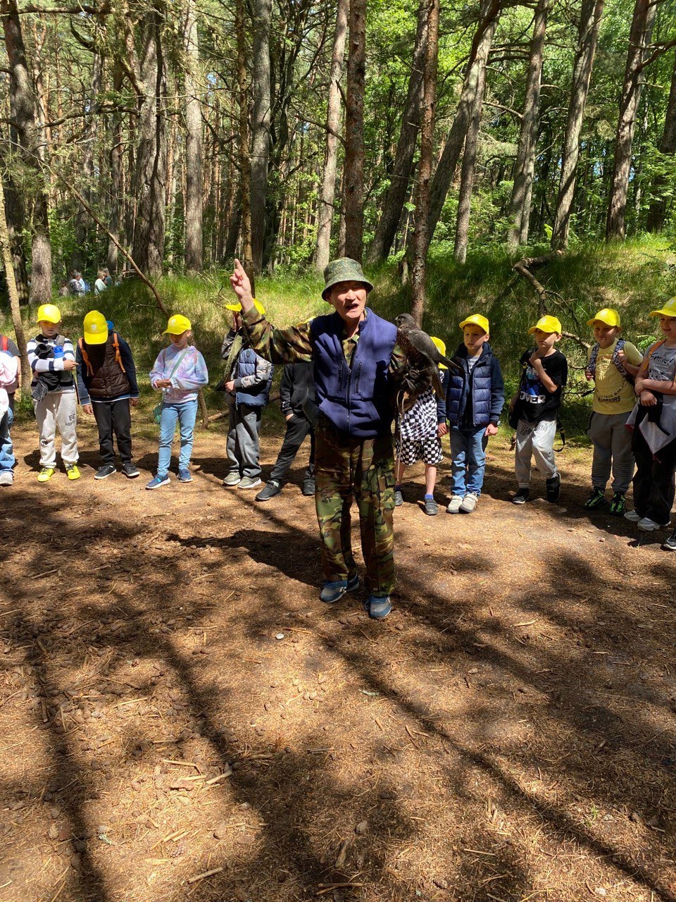 После экскурсии дети отправились на Высоту Эфа, где их ждала вторая часть занятия — практическое знакомство с миром хищных птиц. Под руководством руководителя проекта, опытного сокольника Алексея Афанасьевича Лаврентьева, дети погрузились в увлекательный урок. На этот раз их помощниками были сокол Дайме и филин Золотце, которые стали настоящими героями дня. Алексей Афанасьевич рассказал детям, как правильно обращаться с хищными птицами и как можно помочь им в случае необходимости. Дети с интересом слушали, как эти удивительные создания живут и выживают в дикой природе, много нового и интересного почерпнули они из урока.