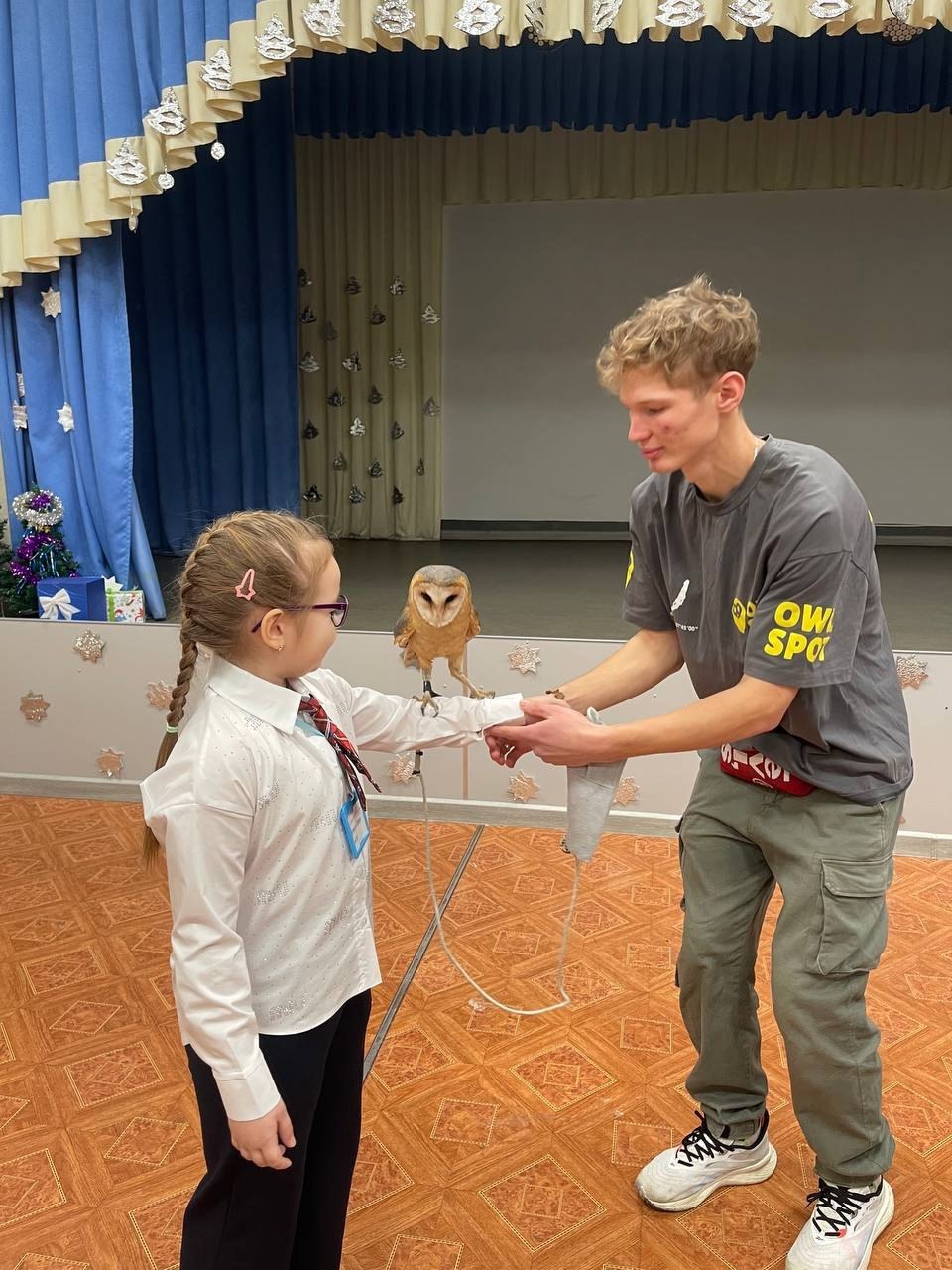 В рамках проекта «Перелётные учителя заботы. Уроки бережного отношения к природе от приюта диких птиц Куршской косы в городах России» Владимир провёл 9 занятий для 230 детей в гимназии №159 города Омска. Эти встречи стали настоящим открытием для школьников, которые смогли не только узнать о жизни сов и других хищных птиц, но и почувствовать связь с природой через личный опыт общения с пернатыми. На уроках дети могли вблизи рассмотреть сов, погладить их и даже подержать на руках. Владимир поделился своими знаниями о повадках птиц, их роли в экосистеме и важности бережного отношения к окружающему миру. Каждое занятие было наполнено эмоциями, вопросами и искренним интересом со стороны детей, которые вдохновились примером Владимира и его увлечением.
